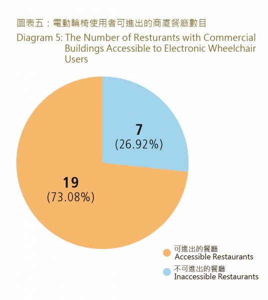圖表五: 電動輪椅使用者可進出的商廈餐廳數目